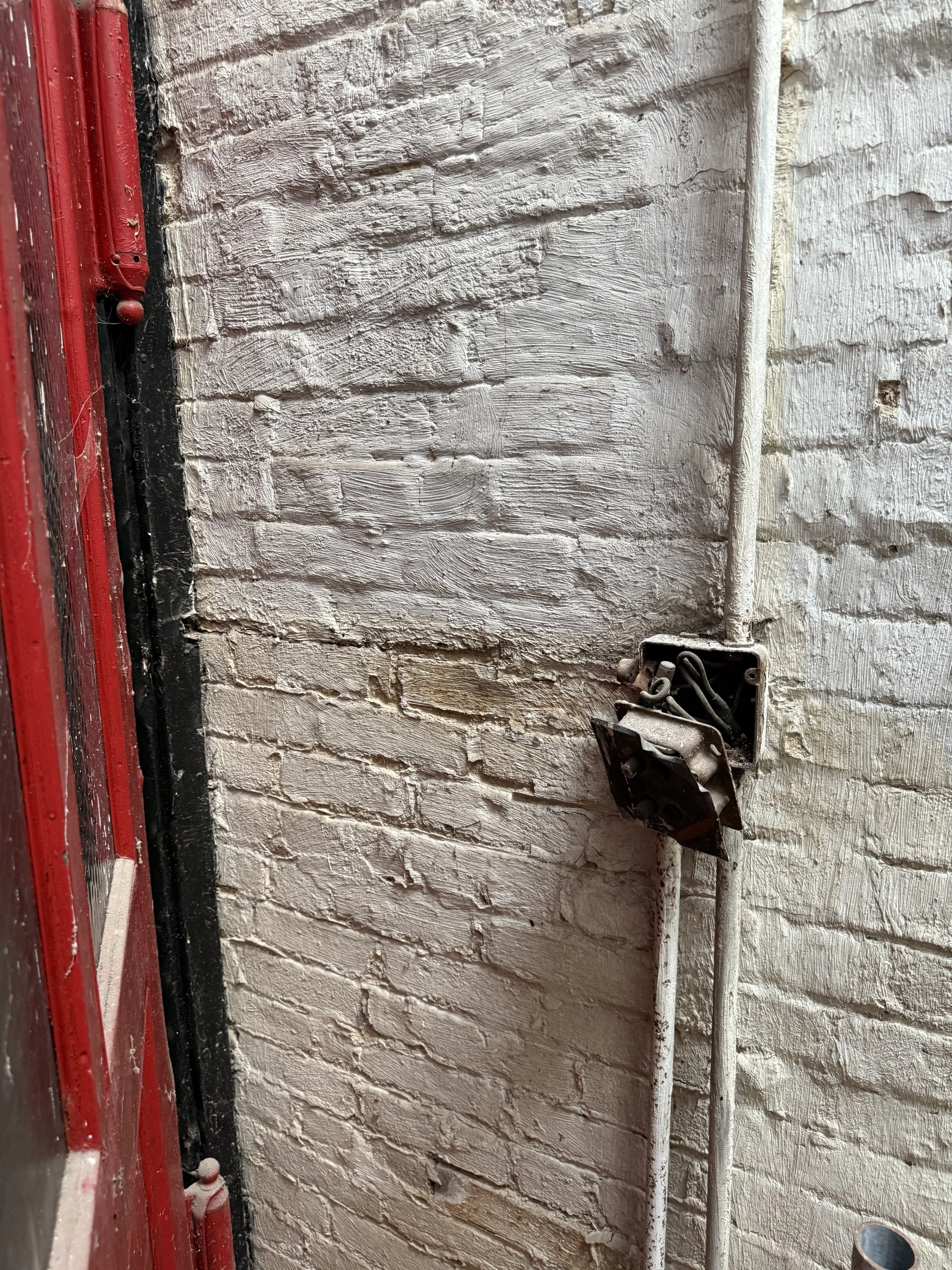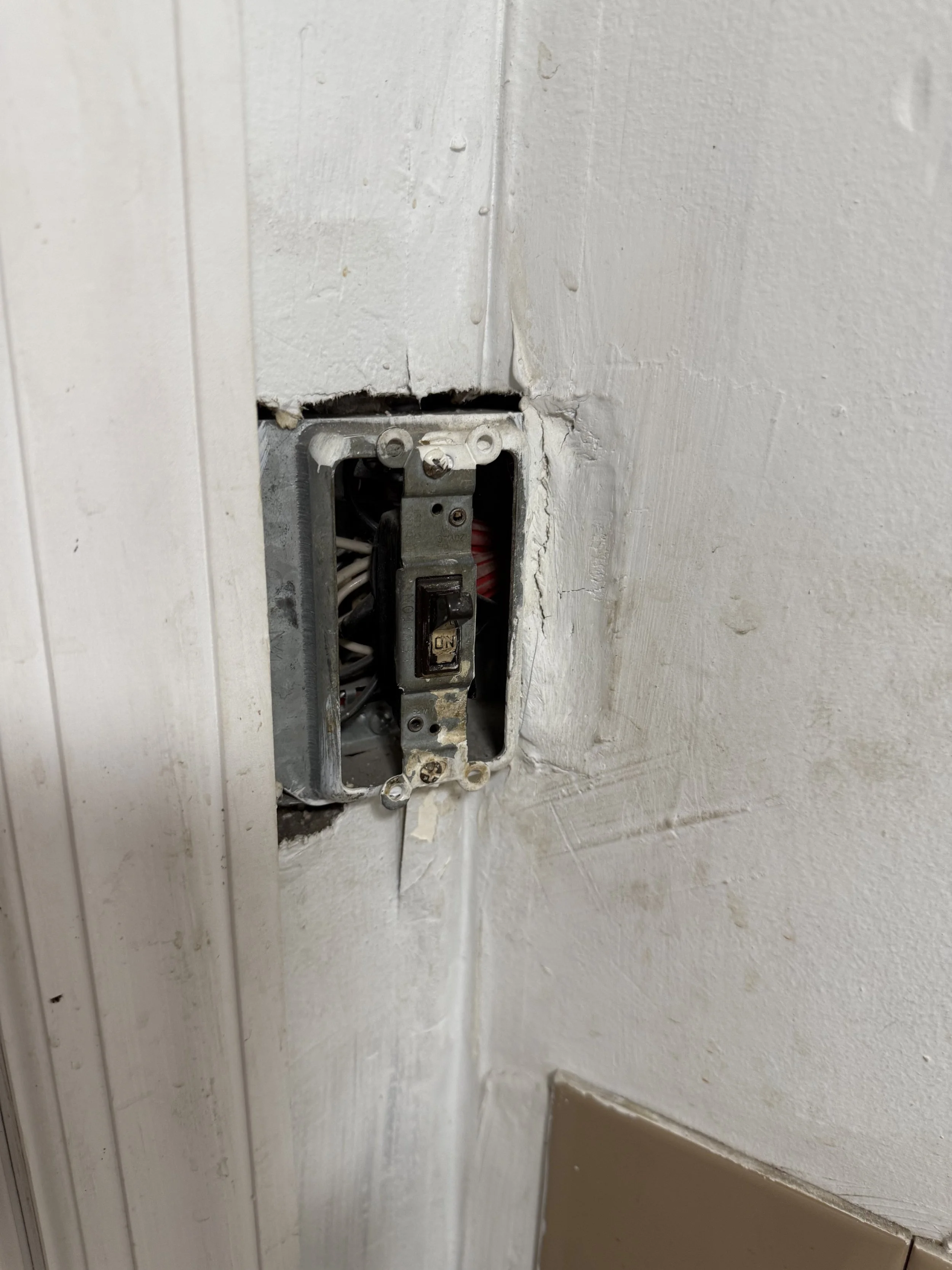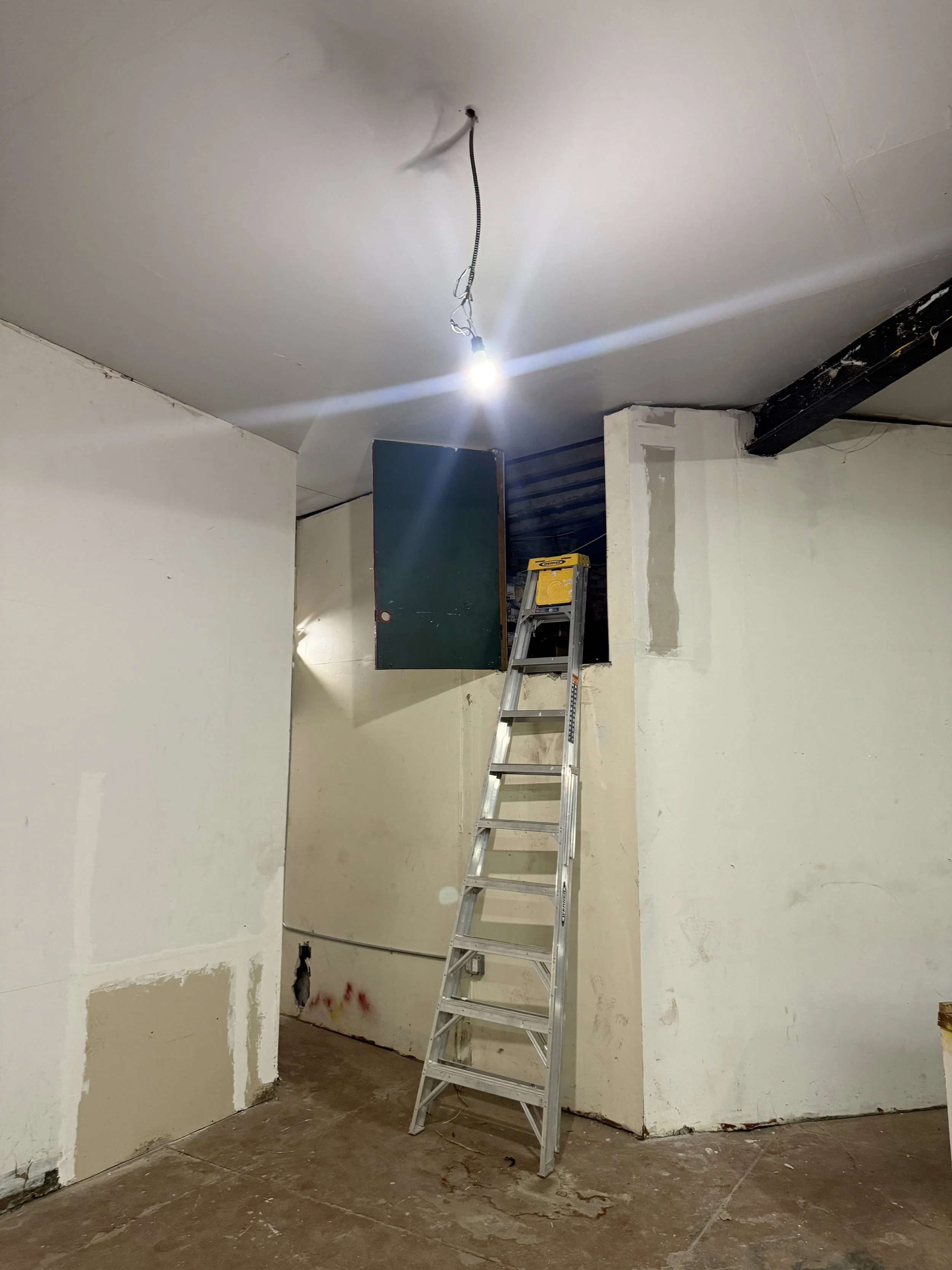 2. Clean up this exposed light and boxes, in the closet by the front stairwell